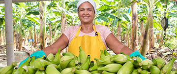 When reaching maturity plantains are harvested by hand and kept in stalks until it reaches the preparation area. Once there is it cut into individual plantains and washed thoroughly before being transported to the production facility. Cassavas are harvested individually and taken to a collection area where they are cleaned and then transported to the production plant.